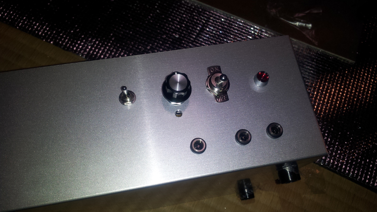 最終的にケース加工、配線、部品、回路取り付けを済ますとこんな感じです。