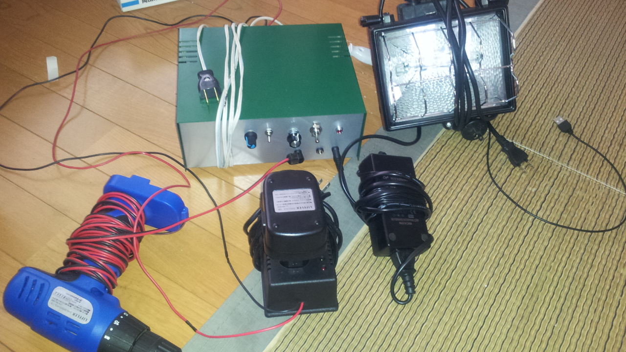 設計当初は充電器は使用しないつもりでしたが、トランス式で結構容量も大きいようだし、便利なので少し改造してこちらも組み込むことにしました。