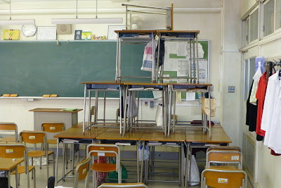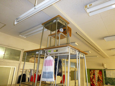 落とし物を探しにきたという彼、しかし目的の机が最下段の中央に配置されている。普段は我々が見下して(見下ろして)ばかりの机に圧倒されながらも、懸命に机の中を探ろうとする。