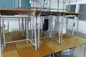 落とし物を探しにきたという彼、しかし目的の机が最下段の中央に配置されている。普段は我々が見下して(見下ろして)ばかりの机に圧倒されながらも、懸命に机の中を探ろうとする。
