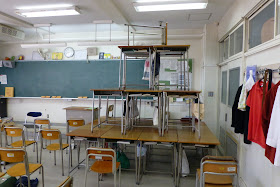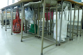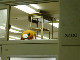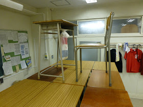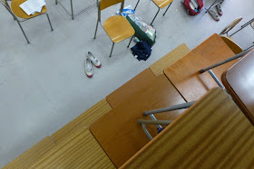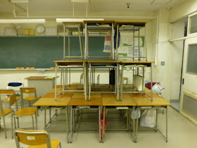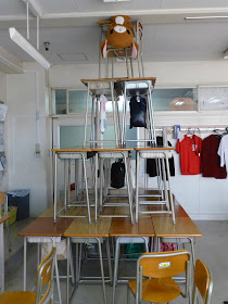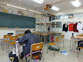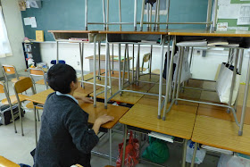 落とし物を探しにきたという彼、しかし目的の机が最下段の中央に配置されている。普段は我々が見下して(見下ろして)ばかりの机に圧倒されながらも、懸命に机の中を探ろうとする。