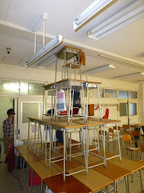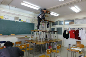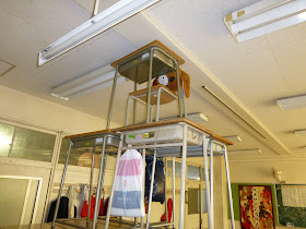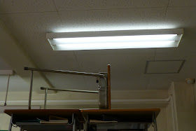 最上段を立てようと(建てようと)したら、蛍光灯のカバーがひっかかって無理だった図。